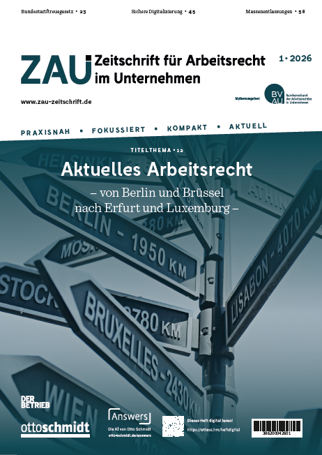 Sichern Sie sich das ZAU Gratis-Paket: 1 Ausgabe + 1 Monat Testzugang zum Beratermodul ZAU – Zeitschrift für Arbeitsrecht im Unternehmen kostenlos.